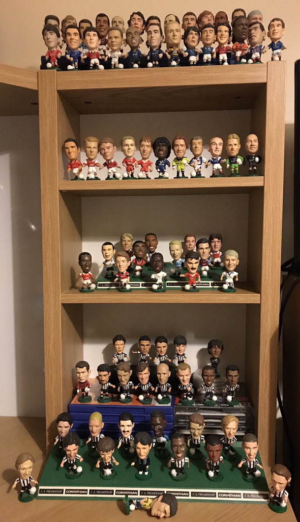 The sticker albums always demolished my pocket money but my main collectable were Corinthian Figures. It started off with the England squad before Euro 96 and then the Newcastle squad came out. I probably have about 200 of them dotted around and recently put them on display to show to @CorinthianHead on Twitter.